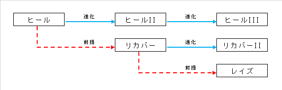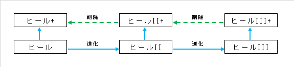 こうすると、通常のヒール→ヒールII→ヒールIIIの進化が