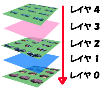 重ね方の順番は「レイヤ番号」で指定し、大きい方が上になります。